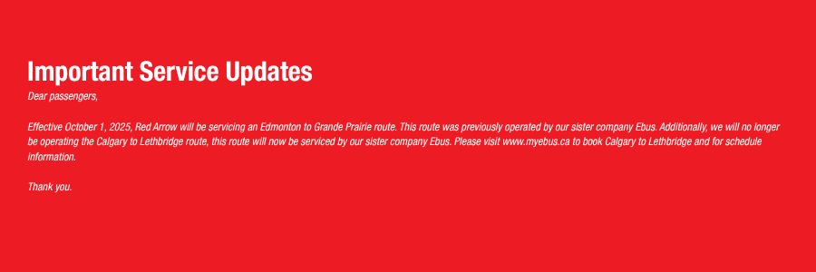 Red Arrow navigates the highways between some of the most popular locations in Alberta and Ontario. These top stops are a just a click and a bus ride away.